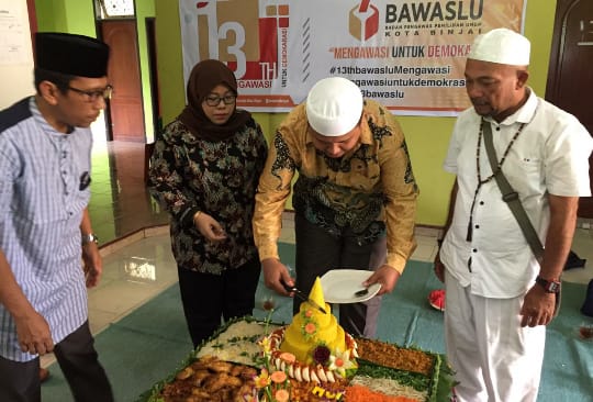 Perayaan HUT ke-13 Bawaslu inipun ditutup dengan pemotongan tumpeng secara bersama-sama oleh pimpinan Bawaslu Kota Binjai.