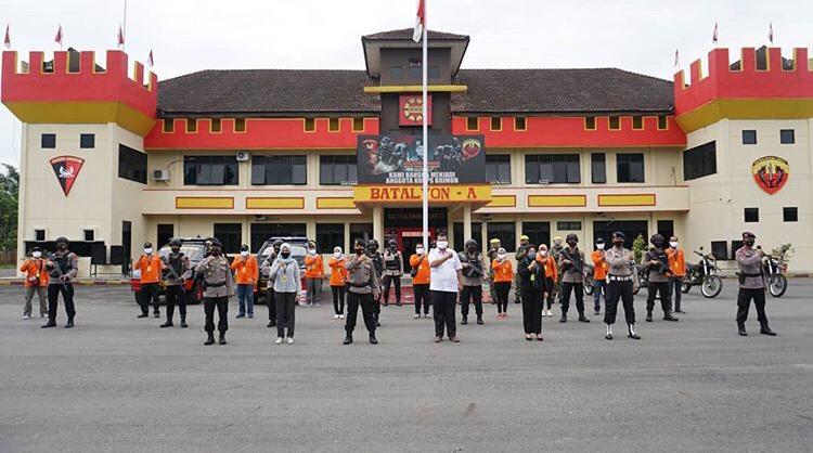 Bawaslu Binjai dan Brimob Batalyon A Pelopor Bagikan Masker Kepada Masyarakat