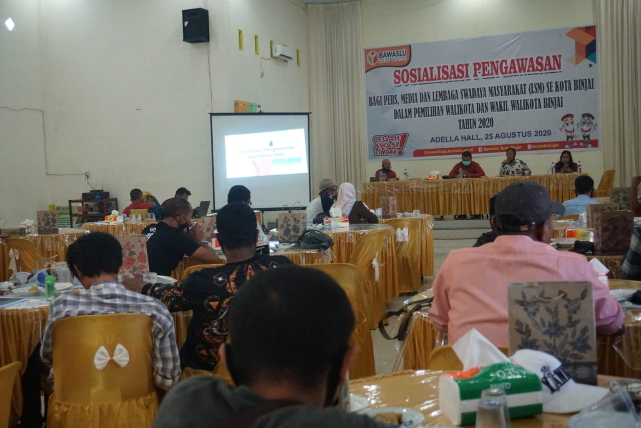 BINJAI, BAWASLU- Bawaslu Kota Binjai Melaksanakan Sosialisasi Pengawasan Bagi Pers, Media Dan Lembaga Swadaya Masyarakat ( LSM ) Se- Kota Binjai Dalam Pemilihan Walikota Dan Wakil Walikota Binjai Tahun 2020. Kegiatan tersebut dilaksanakan selama dua hari di Adella Convention Hall Jl. MT. Haryono, Kelurahan Jati Karya, Kecamatan Binjai Utara Selasa & Rabu (25-26/8/2020).