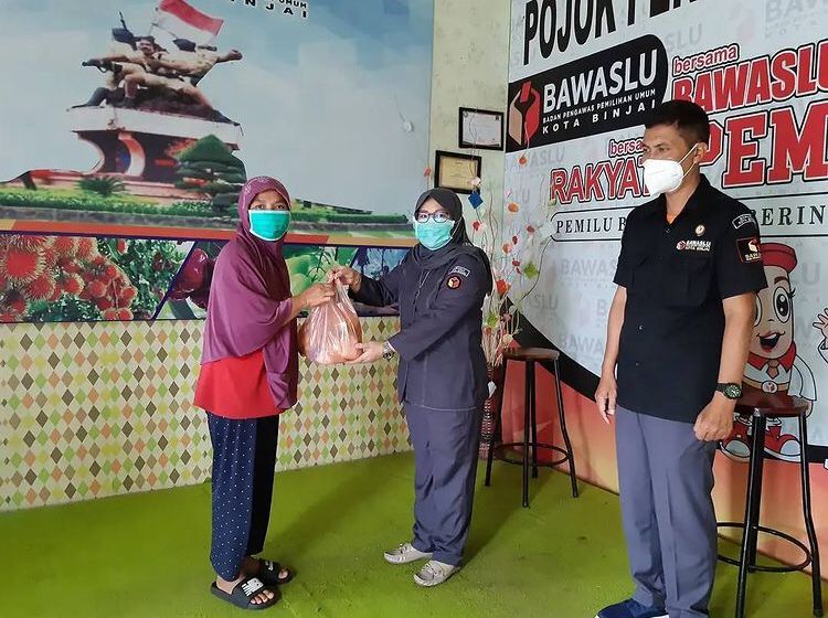 Paket sembako yang berisi beras, telur, gula, minyak goreng dan mie instan tersebut diserahkan langsung oleh pimpinan dan staf sekretariat Bawaslu Kota Binjai.