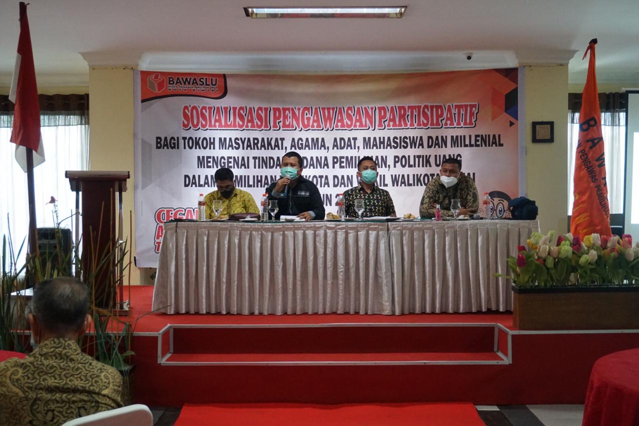 BINJAI,BAWASLU - Badan Pengawas Pemilihan Umum (Bawaslu) Kota Binjai menggelar sosialisasi untuk mengajak masyarakat menolak politik uang pada Pimilihan walikota dan wakil walikota Binjai 9 Desember 2020 di gedung Graha Kardopa, Jalan Sultan Hasanuddin Kecamatan Binjai Kota, Rabu (25/11/2020).