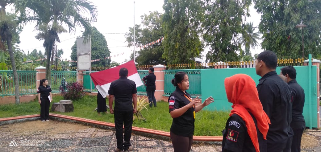 Proses Pengibaran Bendera Merah Putih pada Upacara memperingati Hari sumpah Pemuda di Kantor Sekretariat Bawaslu Kota Binjai, Senin 28/10/2019.