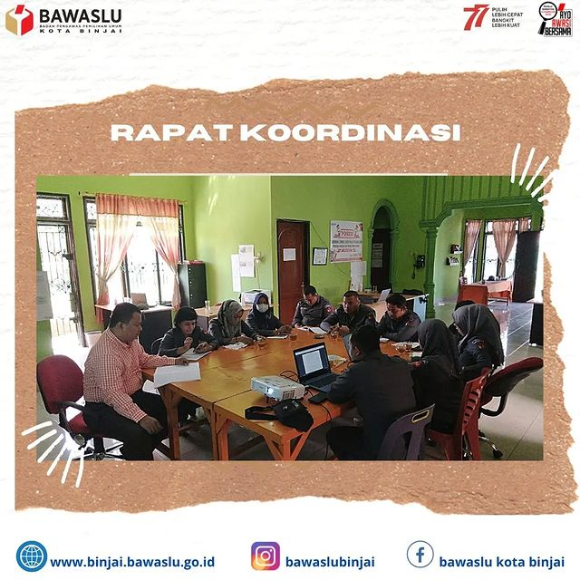 Binjai, Bawaslu - Ketua Bawaslu Kota Binjai, Arie Nurwanto, SH., MH beserta staf PPNPNS melakukan rapat koordinasi sekaligus pembekalan terkait pengawasan tahapan pendaftaran, verifikasi, dan penetapan partai politik peserta Pemilu 2024 di Kantor Bawaslu Kota Binjai pada hari Senin (8/8/2022).