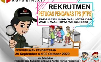 Ayo warga Kota BINJAI daftarkan diri kalian menjadi Pengawas Tempat Pemungutan Suara(PTPS) dalam rangka Pemilihan Walikota dan Wakil Walikota BINJAI Tahun 2020.